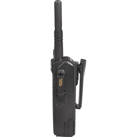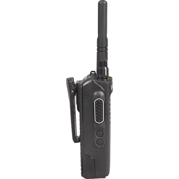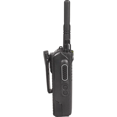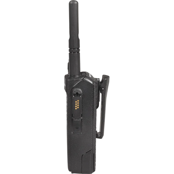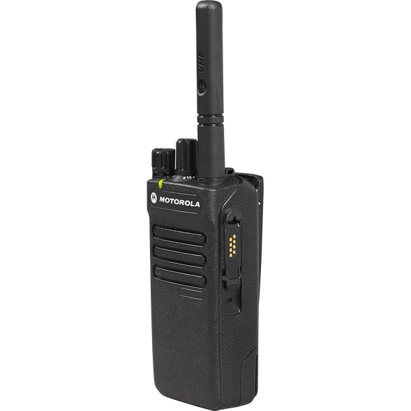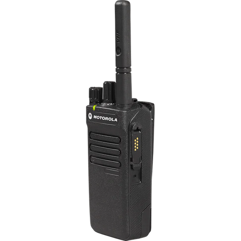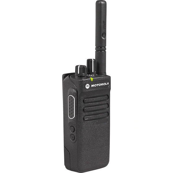 جهاز موتورولا XPR 3300e اللاسلكي المحمول ثنائي الاتجاه. جهاز موتورولا XPR 3300e هو جهاز محمول مزود بـ 16 قناة، مثالي للتصنيع والبناء والمرافق العامة وهيئات السلامة العامة. يبث الجهاز باستخدام ترددات UHF وVHF الرقمية، ويمكن برمجته ليعمل مع أجهزة موتورولا، وآيكوم، وكينوود الأخرى التناظرية أو الرقمية. ينتمي جهاز موتورولا XPR 3300e اللاسلكي المحمول ثنائي الاتجاه إلى سلسلة XPR 3000e، وهو طراز بدون شاشة أو لوحة مفاتيح (طراز بدون لوحة مفاتيح (NKP)).