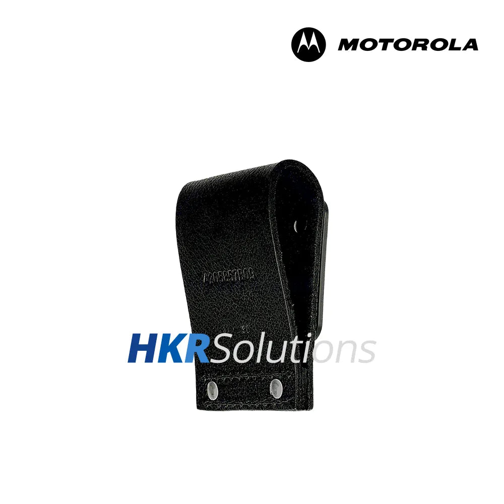 La trabilla de cuero para cinturón de 7,5 cm (3 pulgadas) con articulación giratoria del modelo NTN8040 de MOTOROLA es una forma de conectar los estuches de transporte al usuario. Con una trabilla para cinturón, el cinturón del usuario se puede pasar a través de la trabilla para proporcionar una conexión fuerte que no se puede desconectar sin quitar el cinturón.